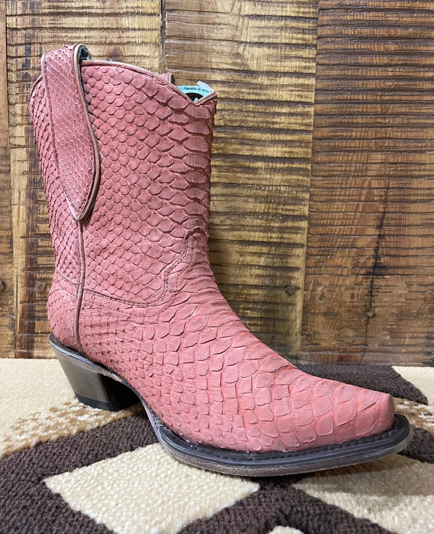 Let’s get the party started in these short Coral Python boots by Corral! Awesome snake scale detail! You will be slithering away on the dance floor in no time flat!