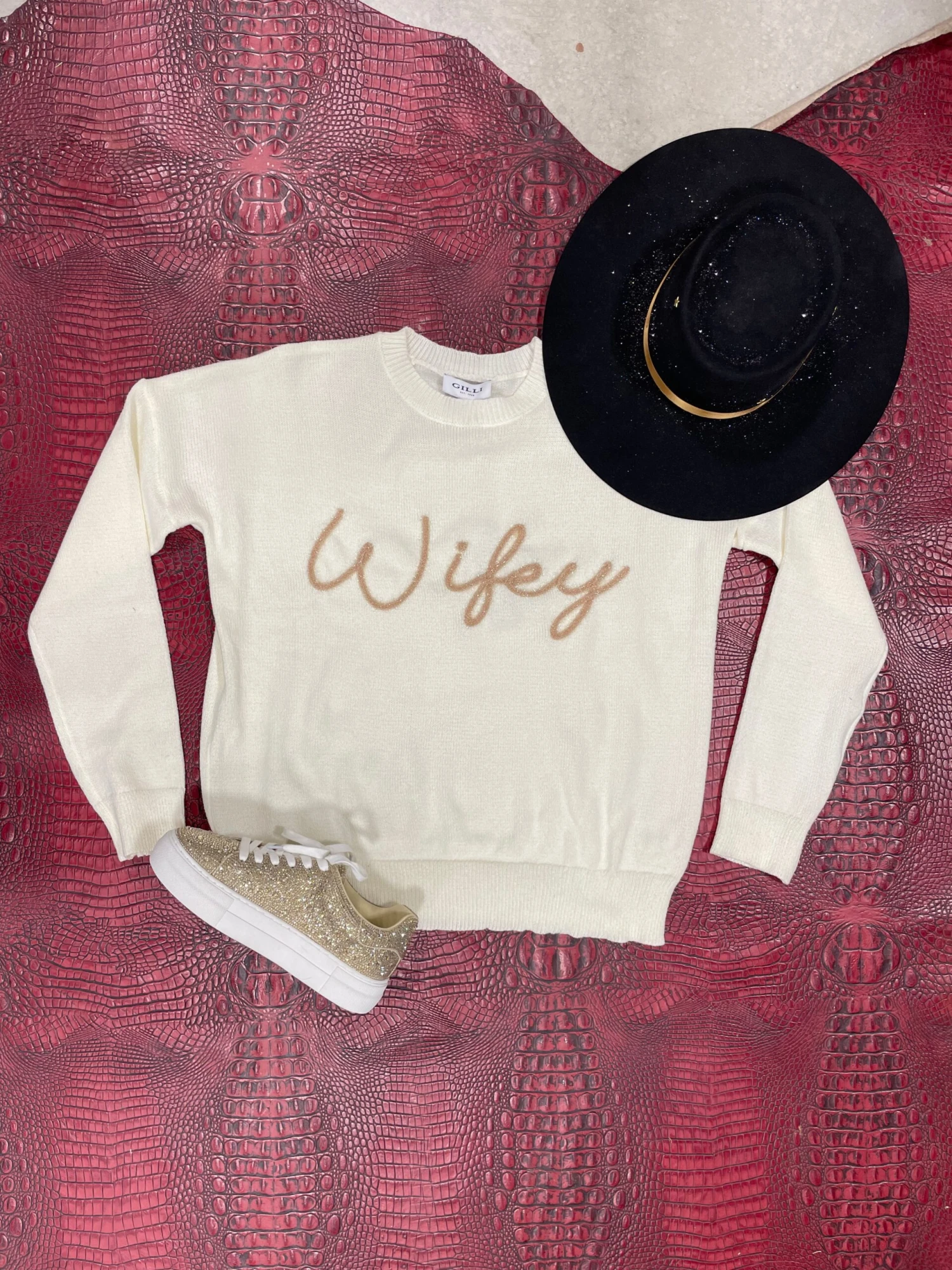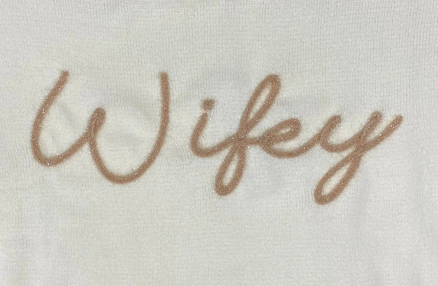 Our lightweight Wifey sweater is perfect for the engaged or new bride! We love how the “Wifey” has shiny stitching added to make it pop! Soft and comfy!